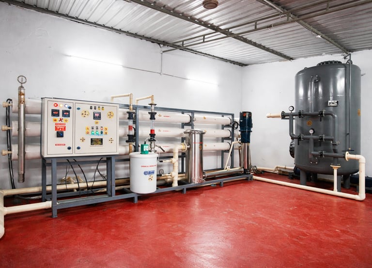 RO plants are one of the most cost-effective and reliable water treatment solutions for industrial and commercial applications. RO technology uses a semi-permeable membrane and applied pressure to remove dissolved salts, suspended solids, bacteria, and harmful contaminants from water. By overcoming natural osmotic pressure, the system separates impurities, retaining them on one side while allowing purified water to pass through.